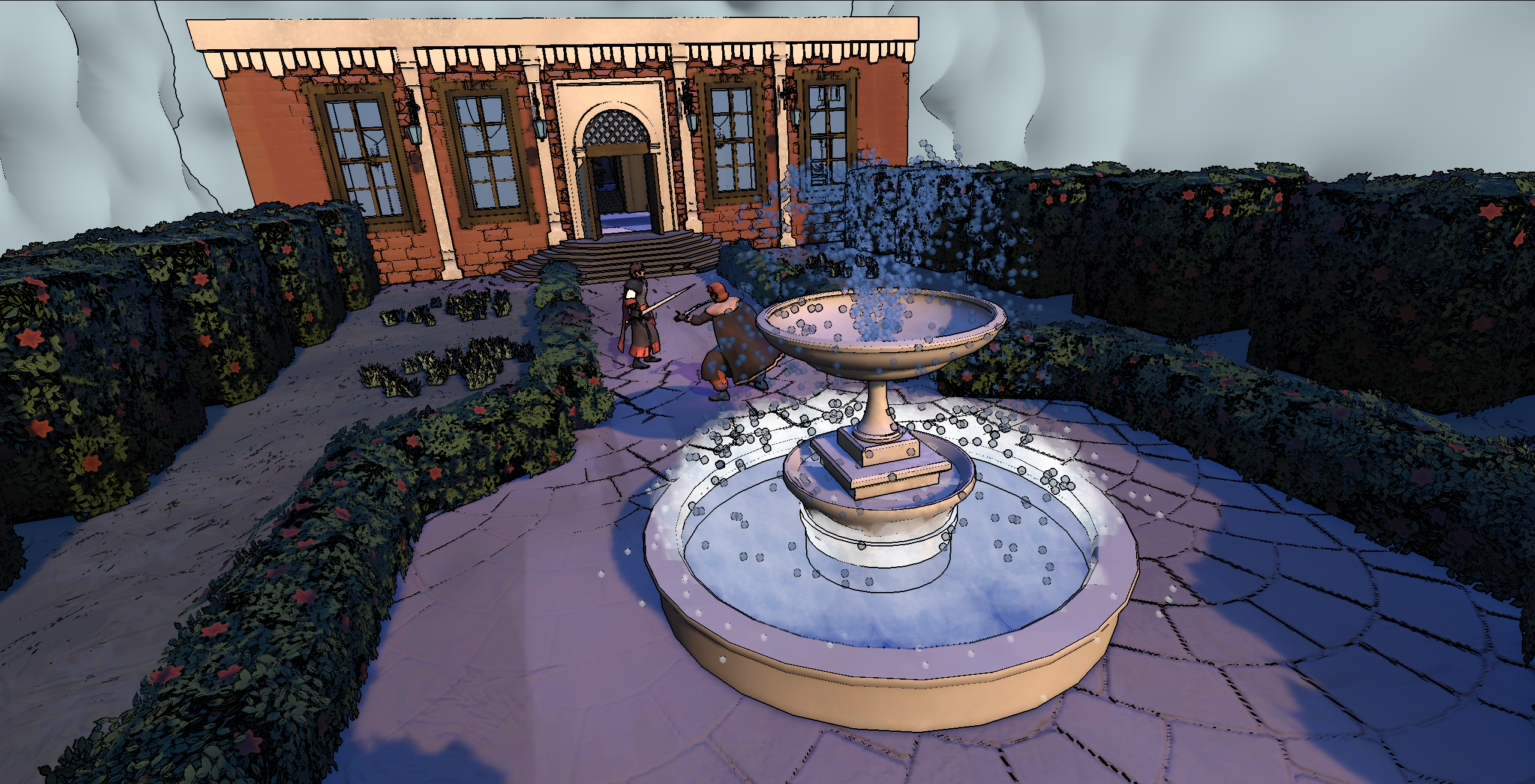 The primary environment of the game is the castle courtyard with a garden inspired by the royal gardens of multiple palaces in Warsaw. It was important to me that the castle and courtyard, especially at the start of the game, have an organized and opulent feel, contrasting the real situation of the kingdom.