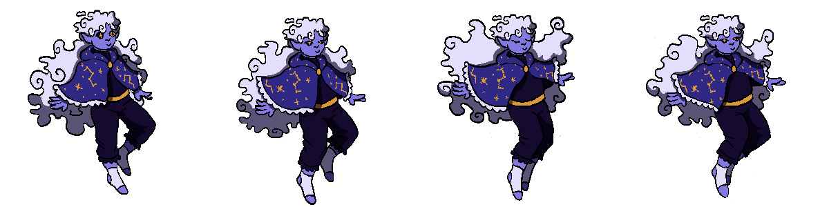 Io was created for a two-week sprite creation assignment, and is meant to be a platformer player character. My main goal with this design was to make something approachable, soft, and colorful.