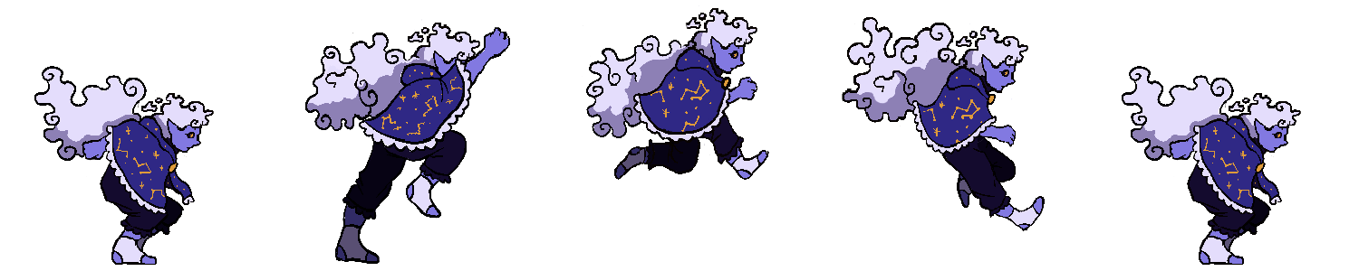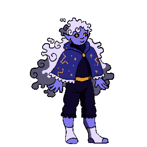 I was inspired by space and astronomy, something I’ve been interested in since childhood. Additionally, due to the nighttime theme of both the character and the envisioned game, I opted to make the character's outfit resemble PJs or a blanket. The visual inspirations came from animated shows such as The Owl House and Steven Universe.